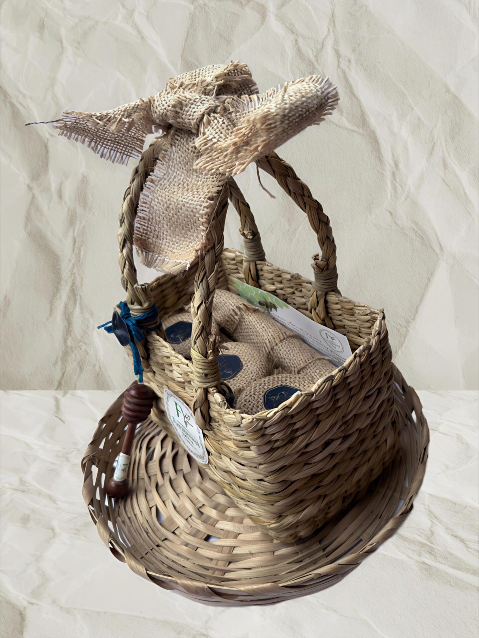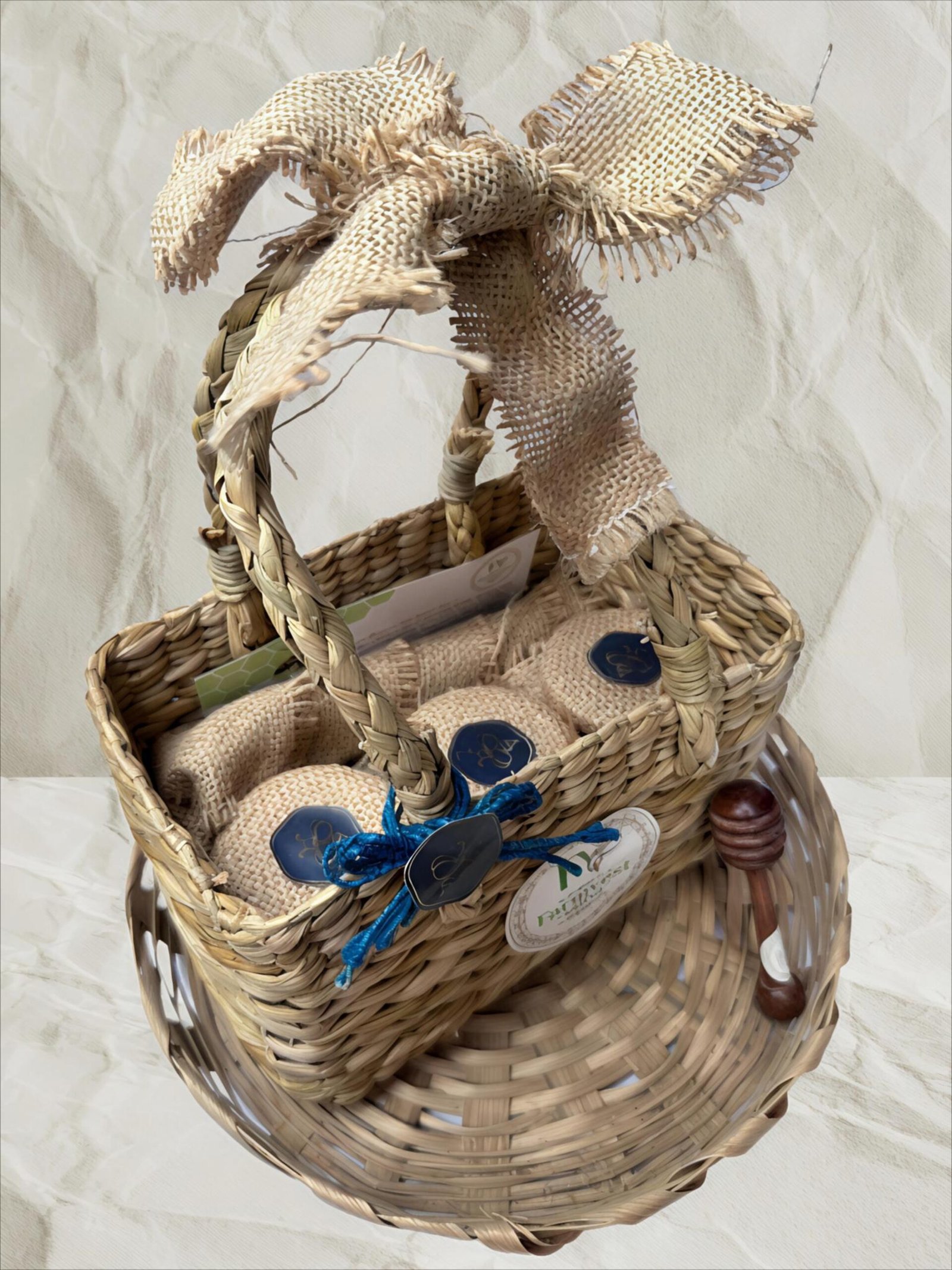 Assorted Premium Honey Gift Basket with Wooden Honey Dipper